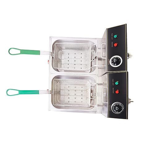 Kiran Enterprise Stainless Steel Electric & Gas 8 Liter Double Pan Deep Fryer for Restaurant and Kitchen and commercial Use