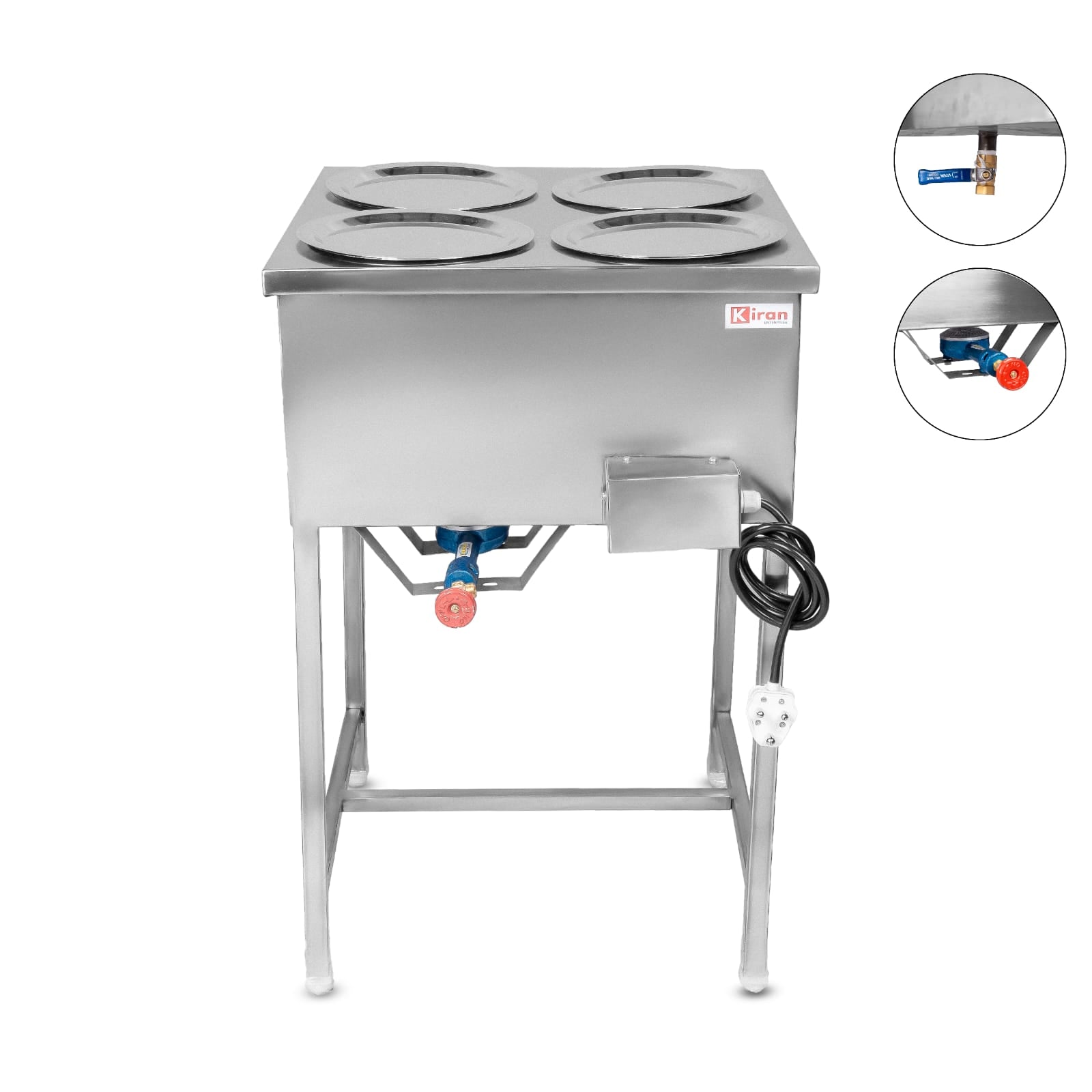 Dual Power Versatility: This model can operate on both electric and LPG gas sources. This makes it ideal for locations with limited electricity or for outdoor catering where gas is preferred.