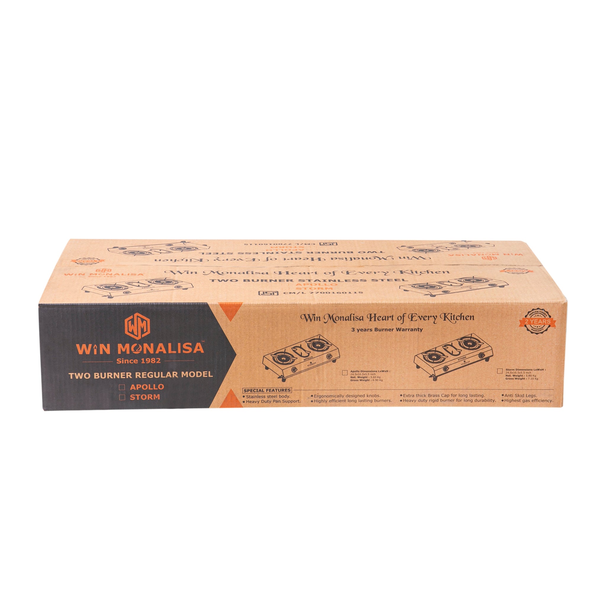2 Year Manufacturers Warranty on product and 3 burner warranty